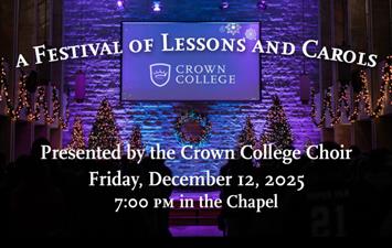Crown College invites you to join us for a special evening of Scripture and song celebrating the birth of Christ. This cherished annual tradition features Crown’s choirs and musicians sharing the story of Christ’s coming through music and Scripture readings.